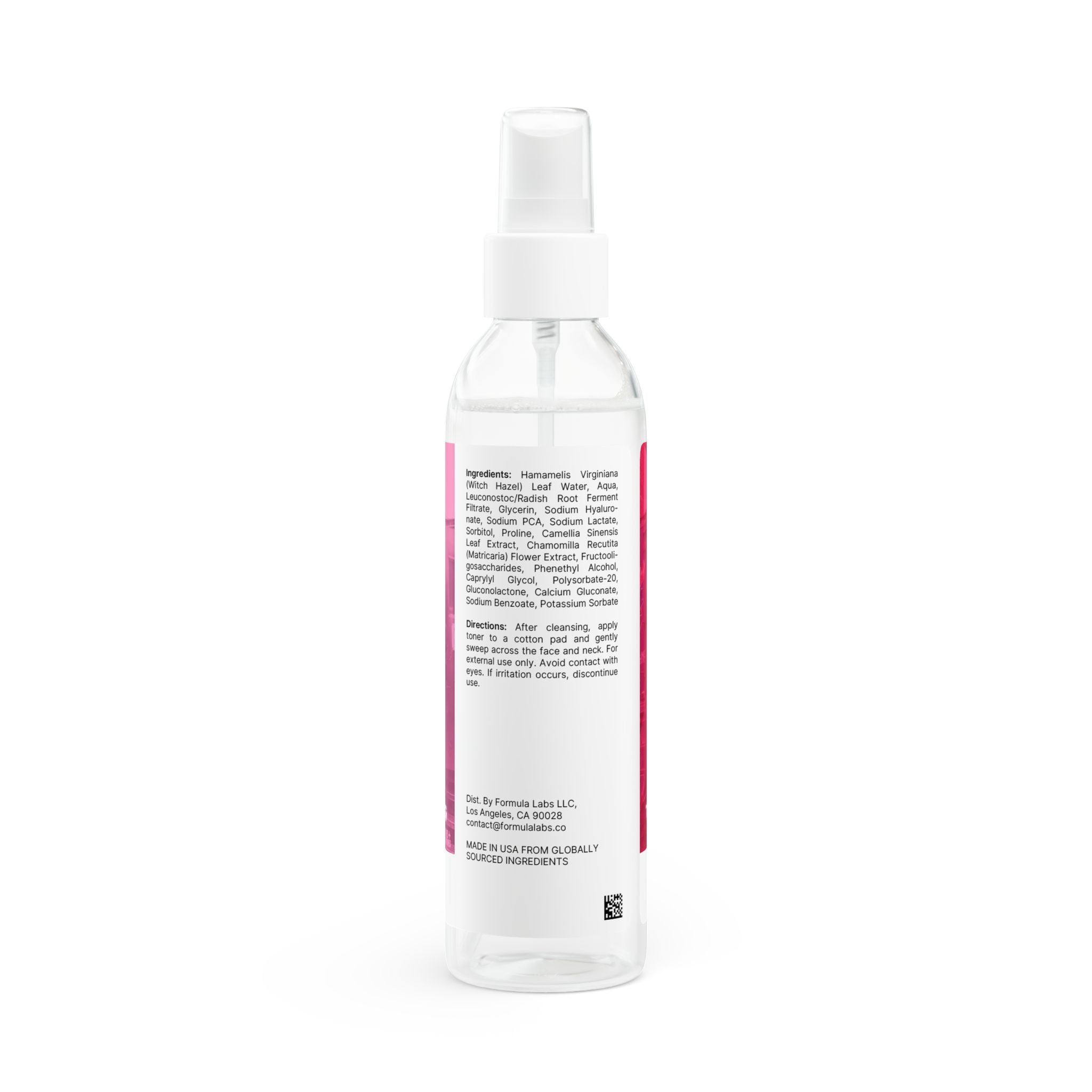 This hydrating toner aims to be your secret to refreshed and nourished skin. Packaged in a 6 fl. oz. clear PET bottle with a white fine-mist sprayer, this toner is as convenient as it is effective. Perfect for dry, dehydrated, or acne-prone skin, it hydrates, soothes, balances, and nourishes, leaving your complexion glowing and revitalized.