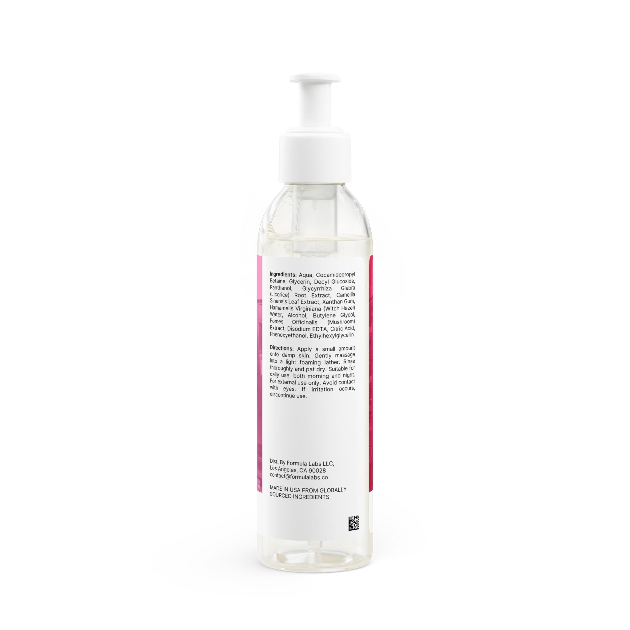 Aqua, Cocamidopropyl Betaine, Glycerin, Decyl Glucoside, Panthenol, Glycyrrhiza Glabra (Licorice) Root Extract, Camellia Sinensis Leaf Extract, Xanthan Gum, Hamamelis Virginiana (Witch Hazel) Water, Alcohol, Butylene Glycol, Fomes Officinalis (Mushroom) Extract, Disodium EDTA, Citric Acid, Phenoxyethanol, Ethylhexylglycerin.